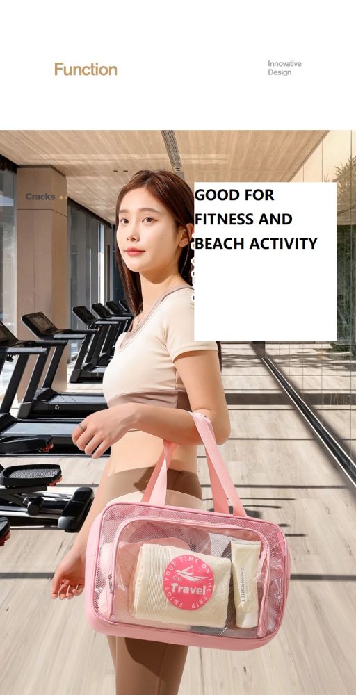 Waterproof large beach bag pink, clear plastic beach bag with mesh