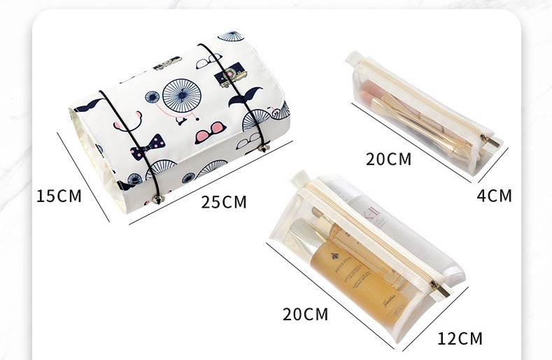 Rolling makeup bags with clear pvc material printed flowers