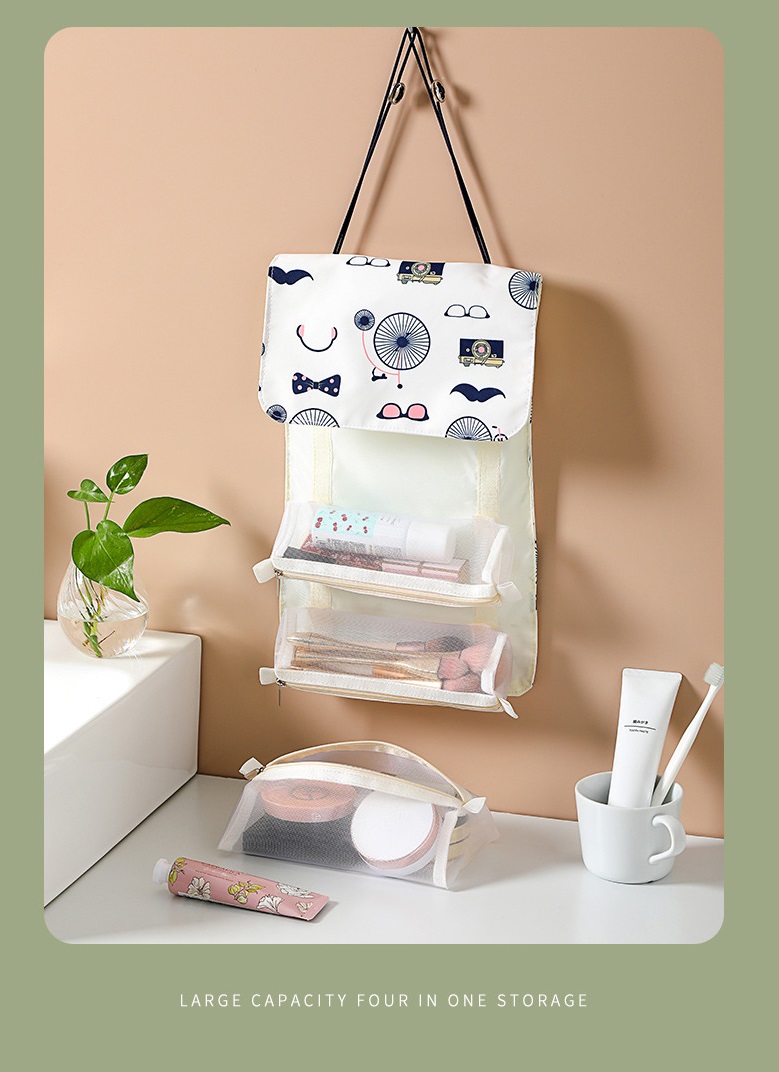 Removable zipper pockets from main roll out makeup bag