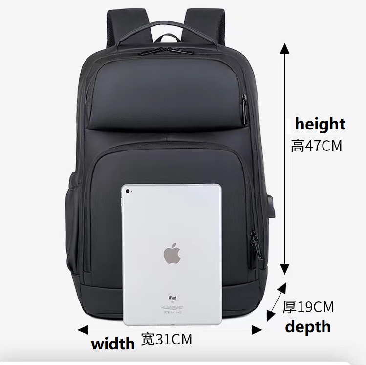 Material is waterproof pu leather, front with two pockets,right side with USB charge ports,