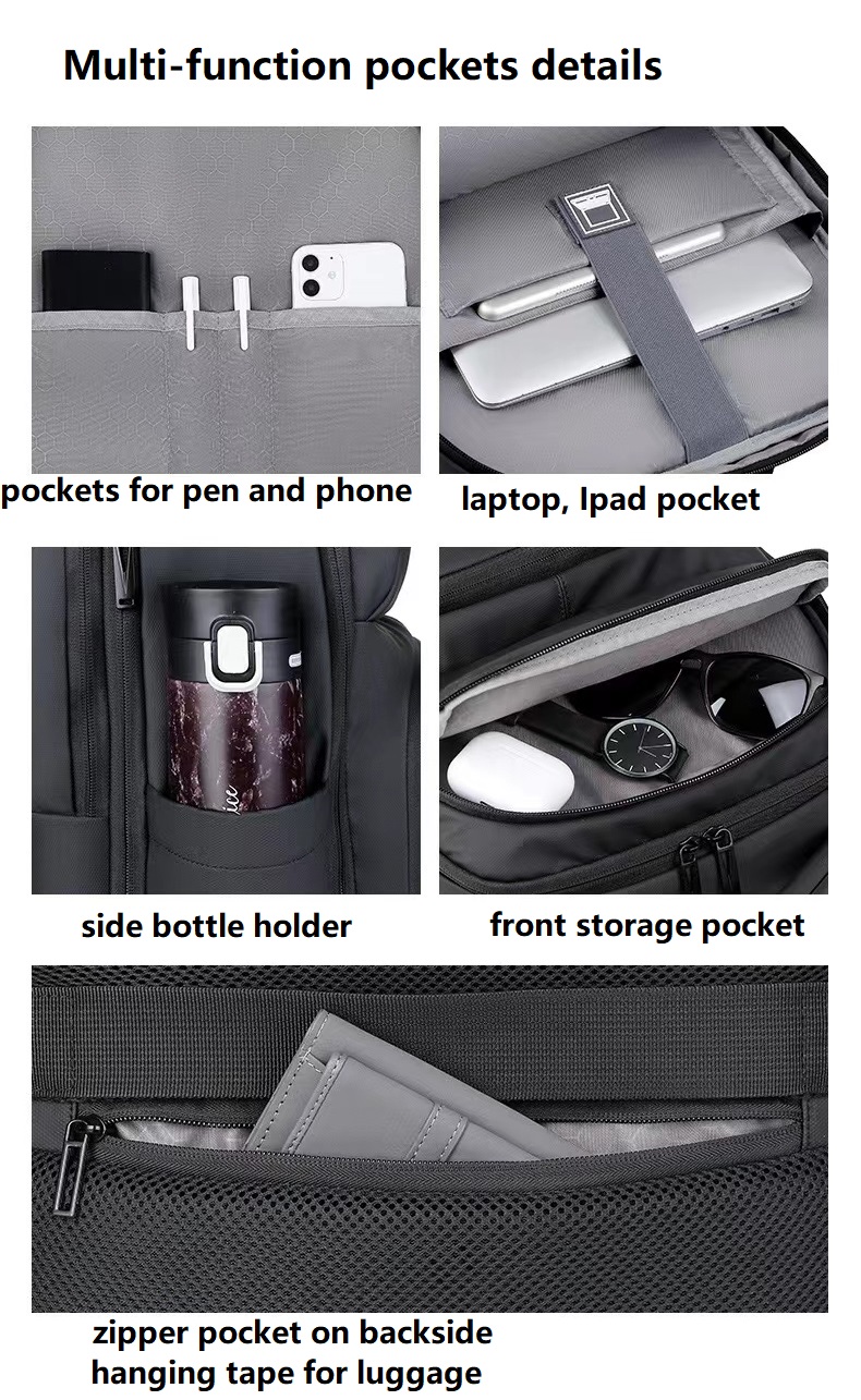 - Perfect for Travel and Business ,there are laptop compartment inside and totally have 3 big compartments,and two zip pockets at front panel,there are zipper pockets on backside and webbing band for hanging luggage,easy to carring when traveling